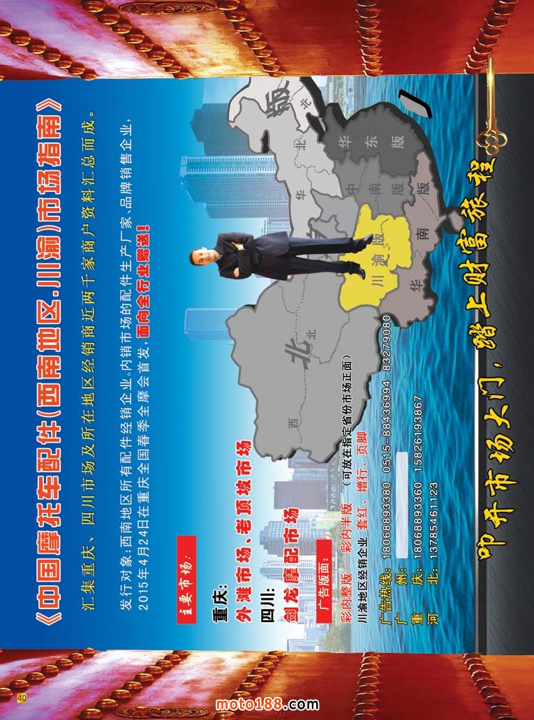 新版《中國摩托車配件市場指南·華南版》首發,廣州地區用中英文雙語出版,為外商使用此書提供便利。明年上半年全摩會在重慶召開,新版《中國摩托車市場指南·川渝版》廣告征集工作也已經開展,此書將在明年