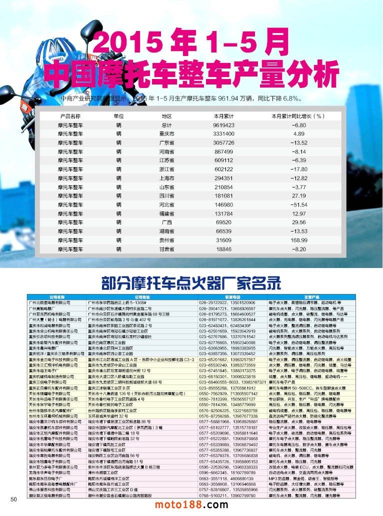 內50 2015年1-5月中國摩托車整車產量分析