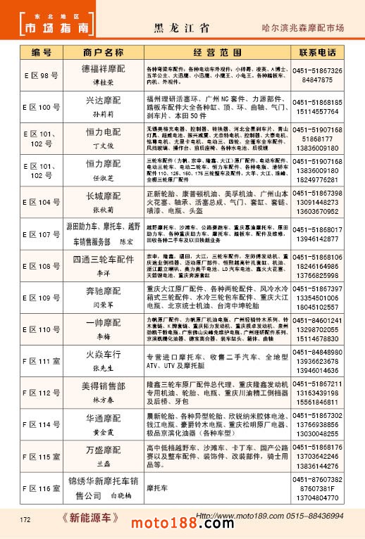 中國摩配市場從上世紀九十年代開始經過高速度的發展,正逐步減速,摩托車行業也漸呈式微,與之緊密相關的后市場的配件與維修也呈逐步下滑之勢,取代摩托車的在發達地區是汽車,欠發達地區是電動兩輪、電動三輪,甚至電動四輪車,隨著經濟的發展,出行的多樣化,也給了消費者多重的選擇。目前現有的摩托車及配件市場,也不再是以純摩托車為主體,有的市場電動車取代了摩托車,有的商店也是混合經營,這些變化在《市場指南》里面都有所反應。這次《北方指南》一些小市場不再單列,并入到相應的省份中去;以前去市場的公交線路,書中也不再列入,因為現在的地圖導航功能十分強大,既新又準。