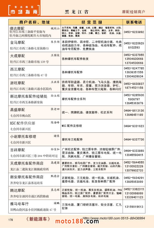內178 黑龍江省摩配經銷商戶
