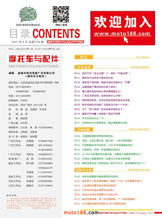 2017.8月《摩托車/電動車與配件》雜志,歡迎大家閱讀
