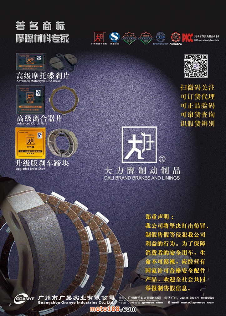 由《摩托車與配件》雜志社,在國內(nèi)首次獨(dú)家推出的《中國摩托車配件外貿(mào)市場指南》工具書正式面世。這是一本專業(yè)定位于外貿(mào)企業(yè)的工具書,隨著一帶一路發(fā)展戰(zhàn)略的推進(jìn),更多企業(yè)走出國門,將產(chǎn)品銷往世界各地,本書收集了國內(nèi)主要從事摩托車配件外貿(mào)的工廠、商家、國外部分駐華采購機(jī)構(gòu)等資料匯總而成.