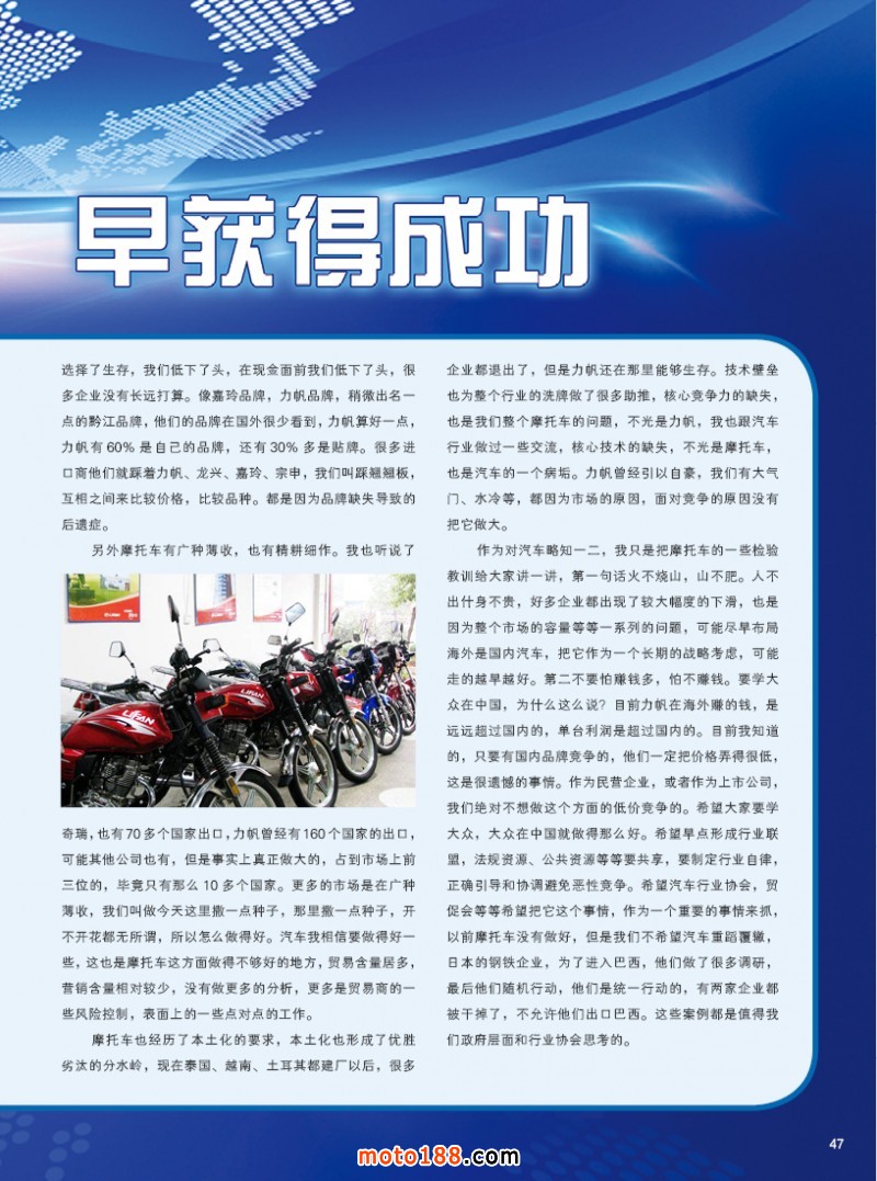 內47 中國摩企越早走出去越早獲得成功