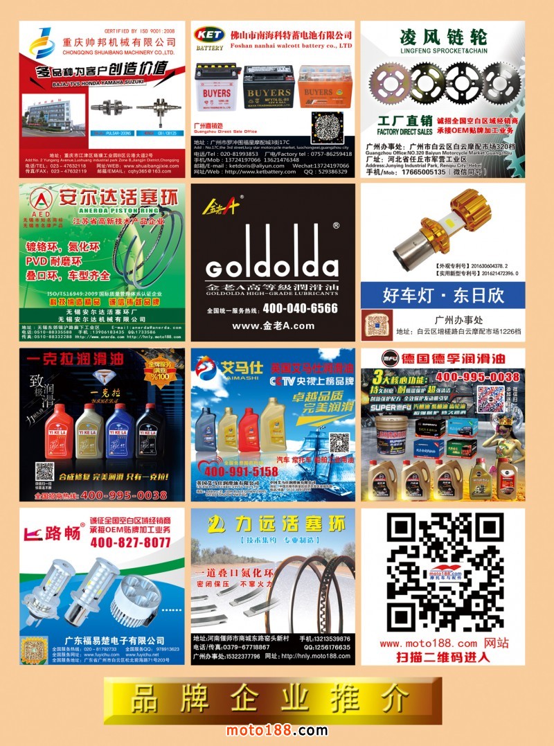 2018年已經到了,新的一年里,我們通過成功的轉型,為未來發展奠定了良好的基礎,外貿企業服務的應用軟件也正在測試。18年全年出刊12期雜志(含上、下半年會刊),2月份是春節,七月份是高溫季節,這兩個月份停止出刊,我們將更多的時間和精力用在微信運用和推廣及服務上,未來摩托車配件行業,我們通過微營銷《摩托車與配件》兩大品牌,為行業提供立體服務,不光為企業品牌宣傳還為行業企業營銷提供多渠道的服務,直白地說就是努力幫企業多掙錢,我們已經走上了這條道,我們堅定不移的走下去,同時有更好的服務的形式,我們也會告知企業,讓傳統的經營插上互聯網的翅膀,使中國制造一帶一路走向世界,這是我們的工作重點,也是我們雜志社的道義和責任,愿行業企業和我們攜手,共克時艱,共謀通達。