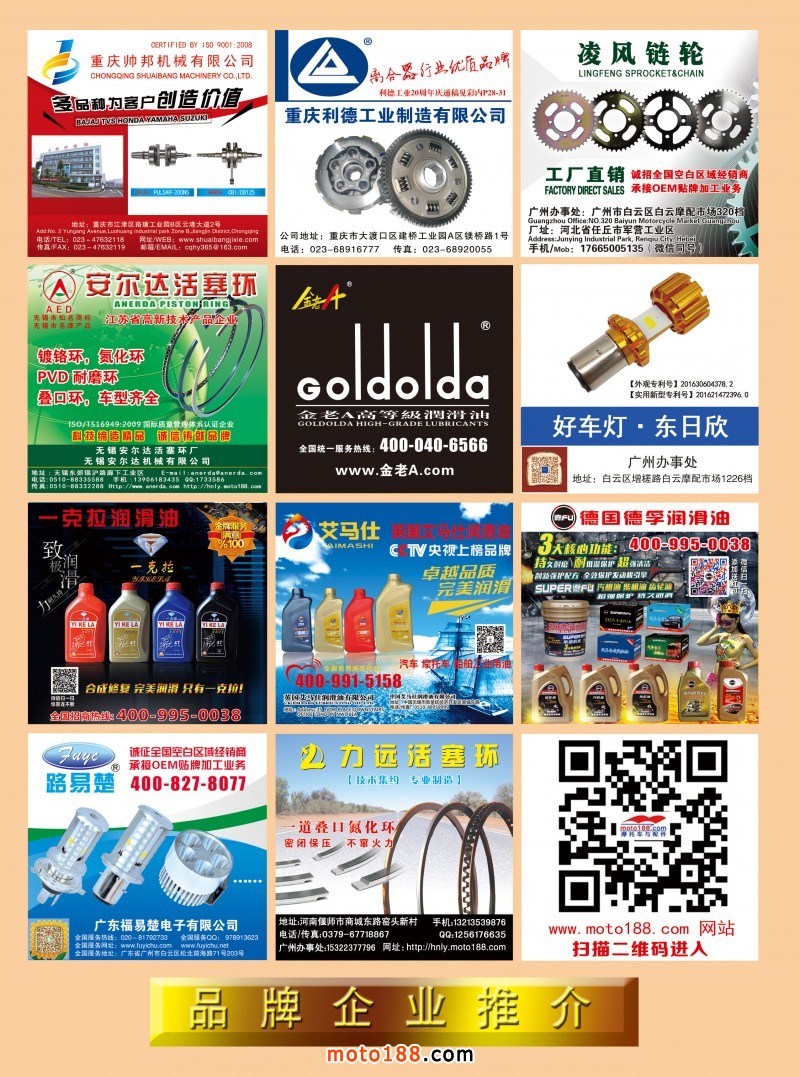 《摩托車與配件》傳統媒體與新媒體的結合,以及我們腳踏實地的工作。這一年多來,雜志已經華麗的轉身,并且拓展出新的發展空間,可為摩配行業企業提供更多的服務形式。目前我們己基本將全行業的從業人員加為微信好友,為國內外貿企業建了四個群,同時又建國內五大市場群,方便了業務開展和企業互動;完成了對全國市場的新一輪的走訪,對國內摩配市場有了一個全面的準確的認識;完成了對目前現有摩配生產廠家的資料更新。2017我們蓄勢待發,2018我們揚帆起航!