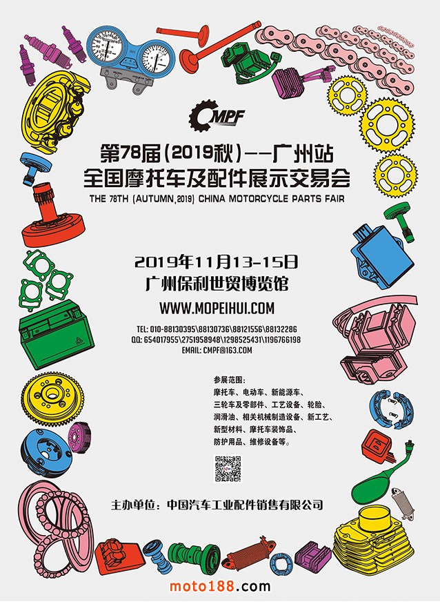 第78屆(2019年秋)全國摩托車及配件展示交易會將于11月13-15日在廣州保利世貿博覽館開展,這是一年一度的行業盛會,面對著中美貿易摩擦,國際貿易環境惡化,我們摩托車配件行業依然在砥礪前行,許多從事出口貿易的企業用各種不同的形式努力的開拓國際市場。一年一度的廣州全摩展也是一個很好的平臺,國內大部分從事進出口的企業,都不會放棄這樣的機會展示自己,開拓市場,發展客戶;海外采購商萬里迢迢,不辭路遠,皆為利來......