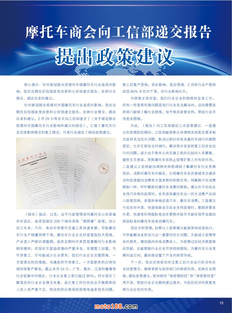 內15 摩托車商會向工信部遞交報告提出政策建議
