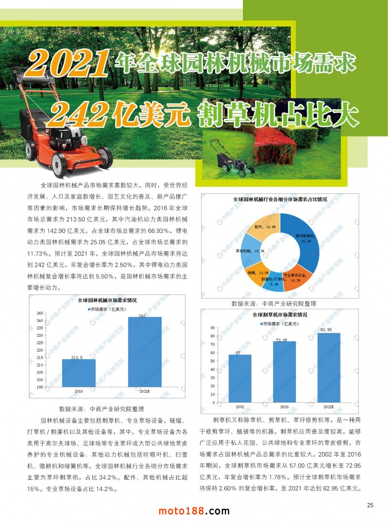 內25 2021年全球園林機械市場需求,242億美元割草機占比大