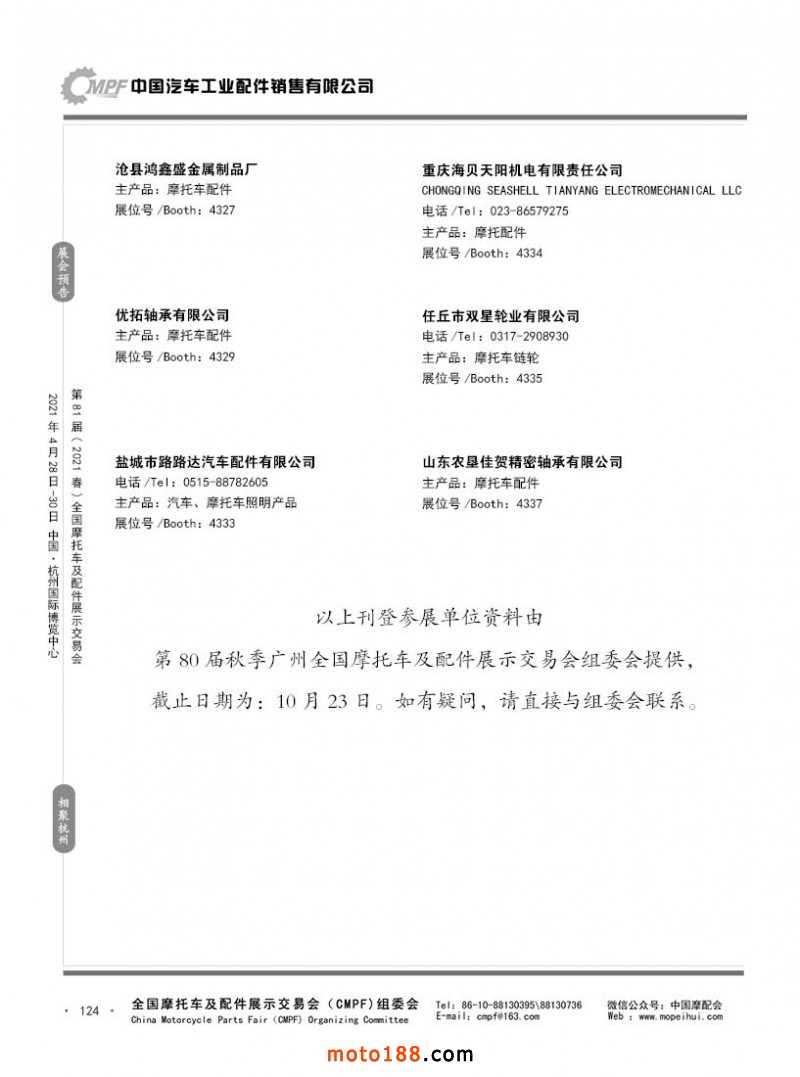 內(nèi)124 第80屆(2020秋)全國(guó)摩托車及配件展示交易會(huì)-廣州站參展企業(yè)信息