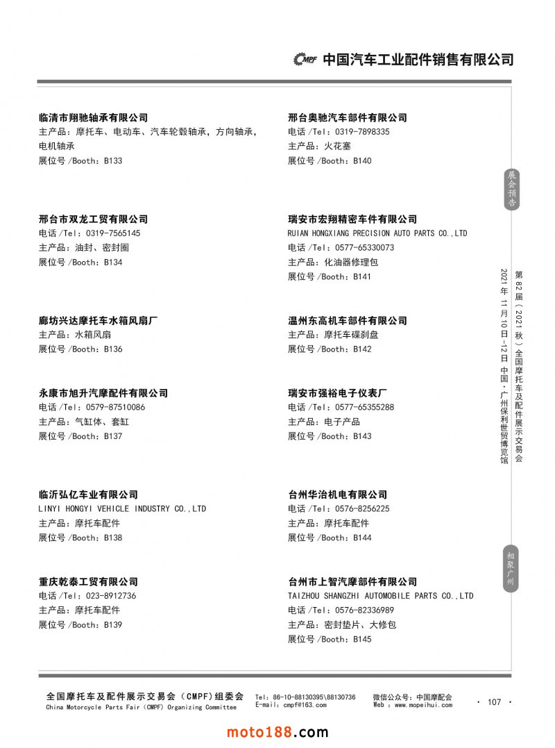 內(nèi)107 第81屆(2021春)全國摩托車及配件展示交易會-杭州站參展企業(yè)信息
