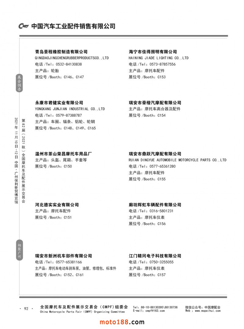 內(nèi)92 第81屆(2021春)全國摩托車及配件展示交易會-杭州站參展企業(yè)信息