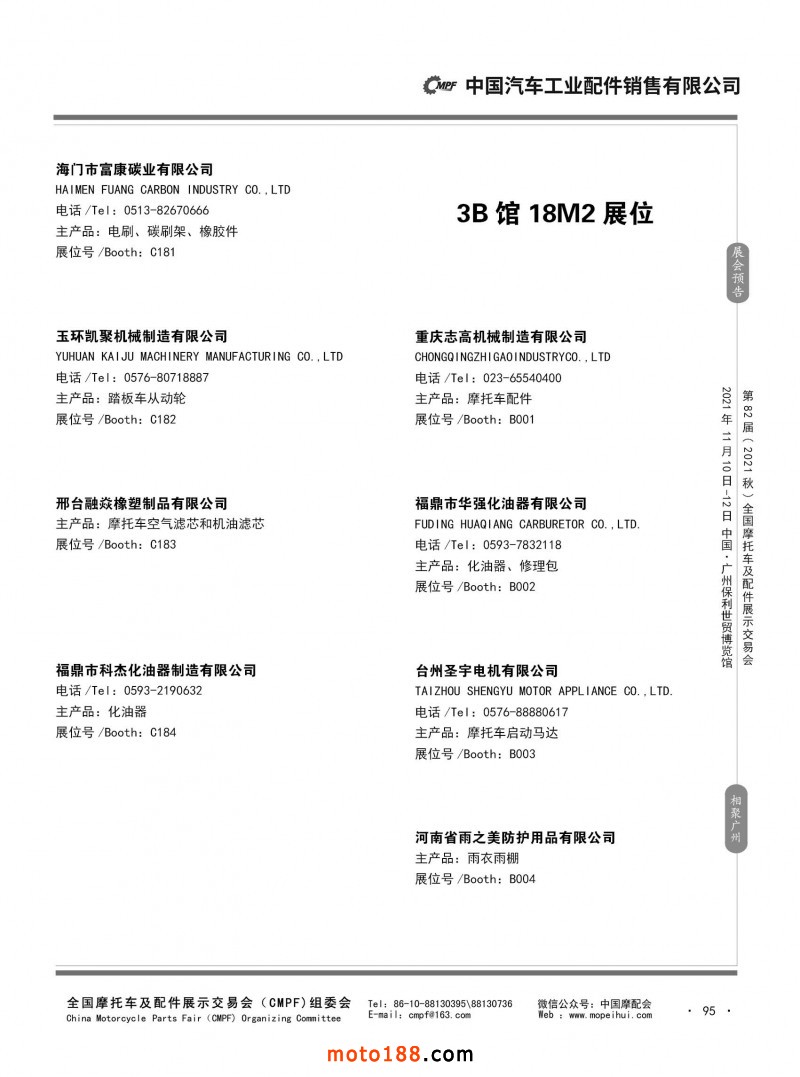 內95 第81屆(2021春)全國摩托車及配件展示交易會-杭州站參展企業信息