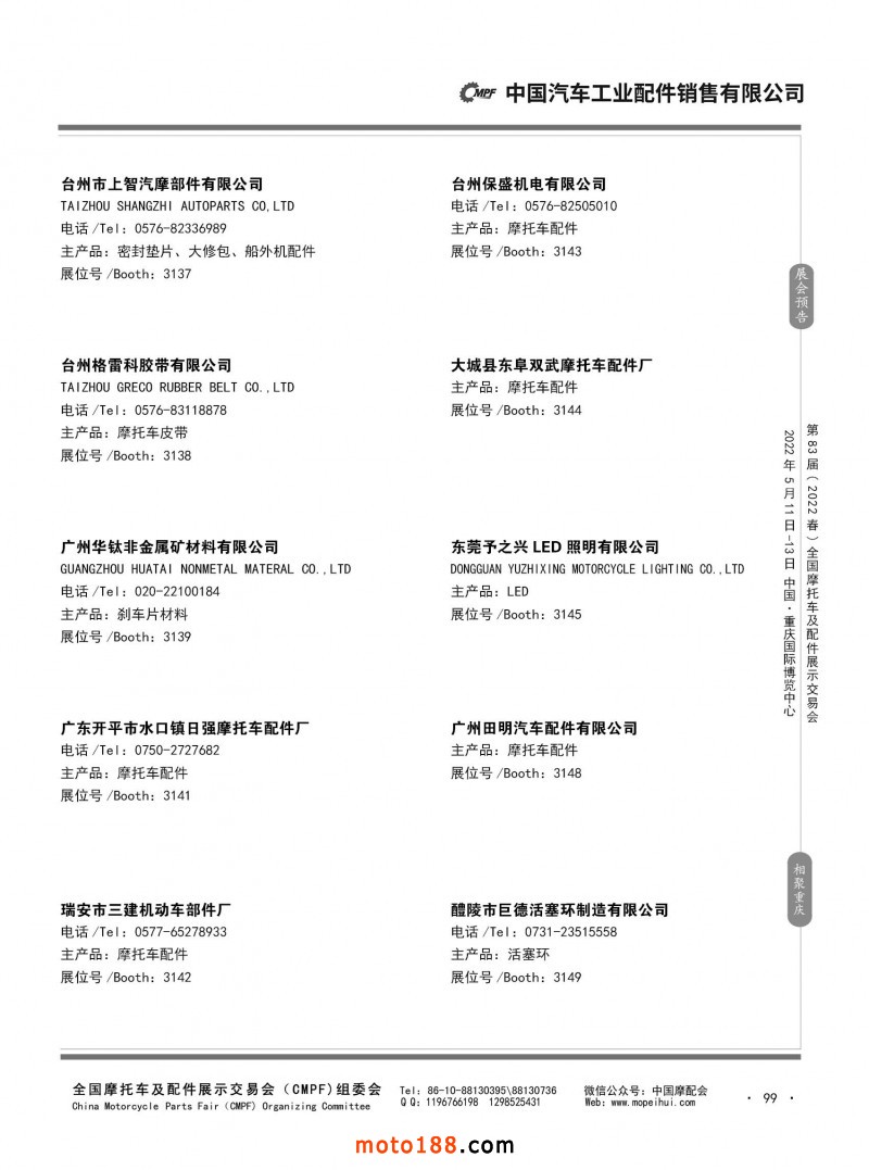 內99 第82屆(2021秋)全國摩托車及配件展示交易會-廣州站參展企業信息