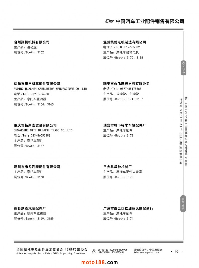 內101 第82屆(2021秋)全國摩托車及配件展示交易會-廣州站參展企業信息