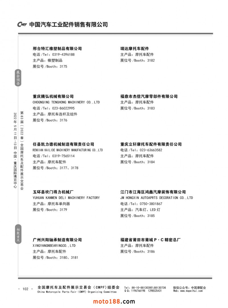 內102 第82屆(2021秋)全國摩托車及配件展示交易會-廣州站參展企業信息