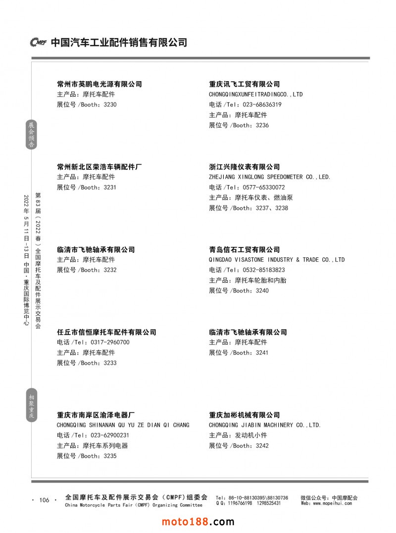 內106 第82屆(2021秋)全國摩托車及配件展示交易會-廣州站參展企業信息