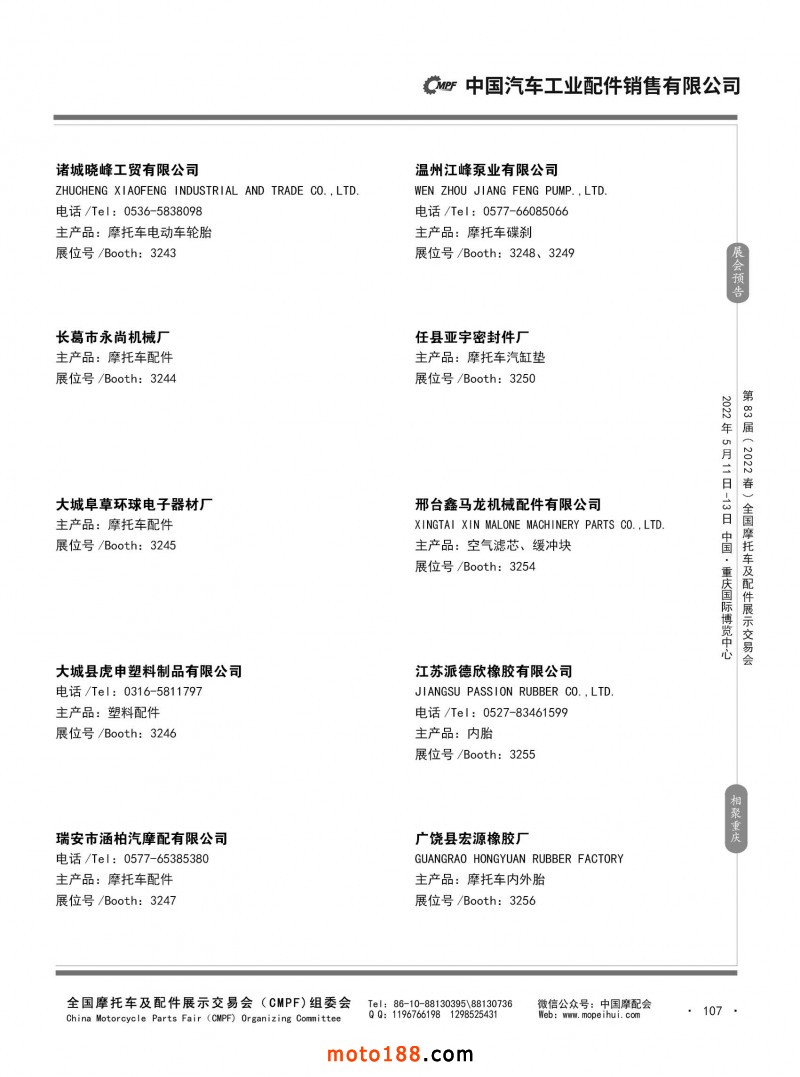 內107 第82屆(2021秋)全國摩托車及配件展示交易會-廣州站參展企業信息