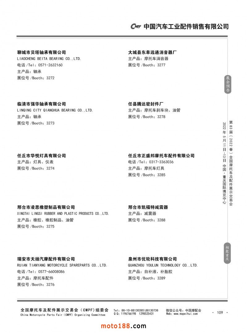 內(nèi)109 第82屆(2021秋)全國摩托車及配件展示交易會-廣州站參展企業(yè)信息