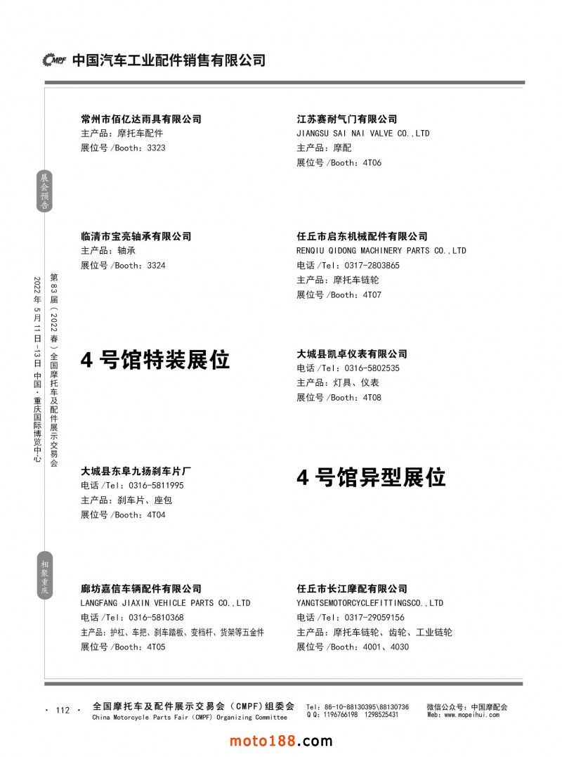 內112 第82屆(2021秋)全國摩托車及配件展示交易會-廣州站參展企業信息