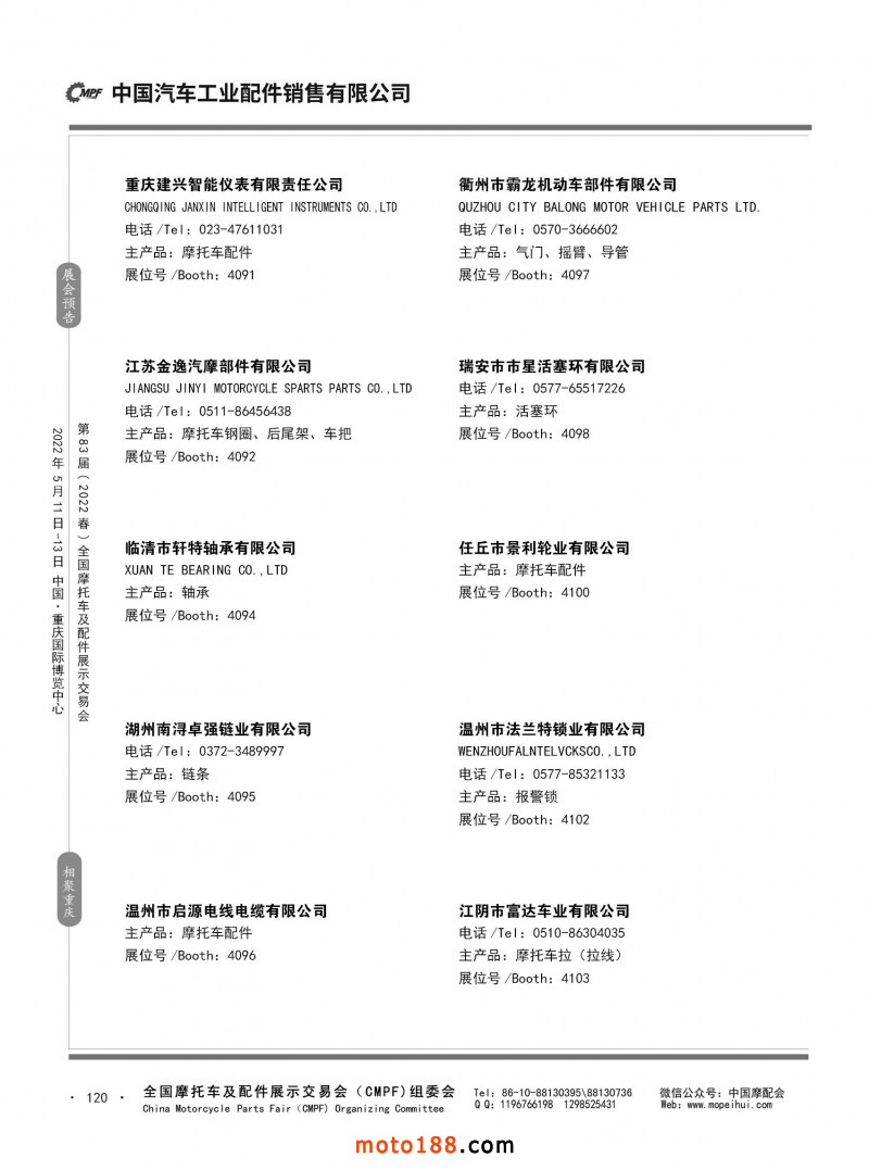 內120 第82屆(2021秋)全國摩托車及配件展示交易會-廣州站參展企業信息