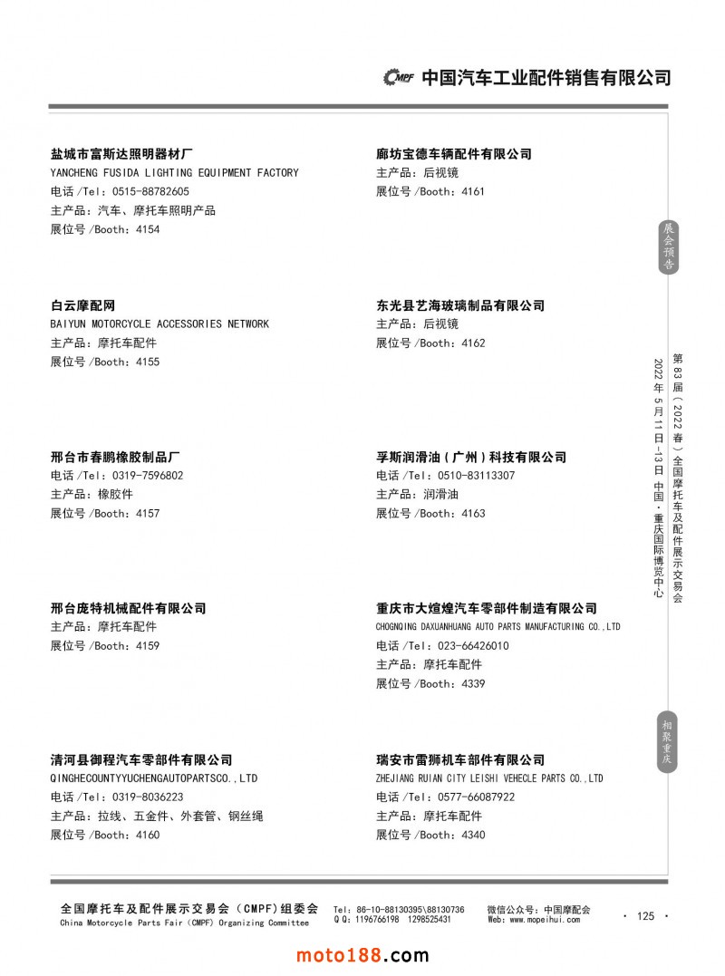 內125 第82屆(2021秋)全國摩托車及配件展示交易會-廣州站參展企業信息