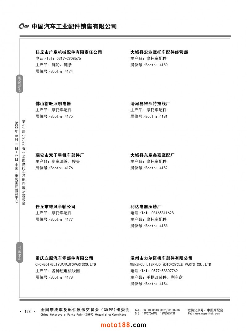 內128 第82屆(2021秋)全國摩托車及配件展示交易會-廣州站參展企業信息