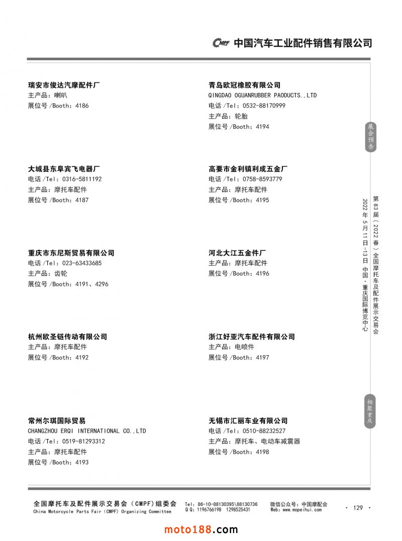 內129 第82屆(2021秋)全國摩托車及配件展示交易會-廣州站參展企業信息