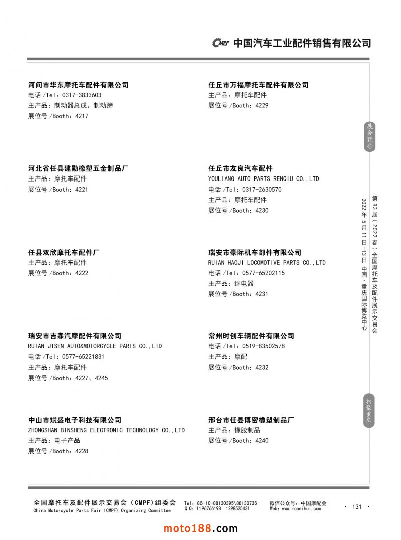 內131 第82屆(2021秋)全國摩托車及配件展示交易會-廣州站參展企業信息