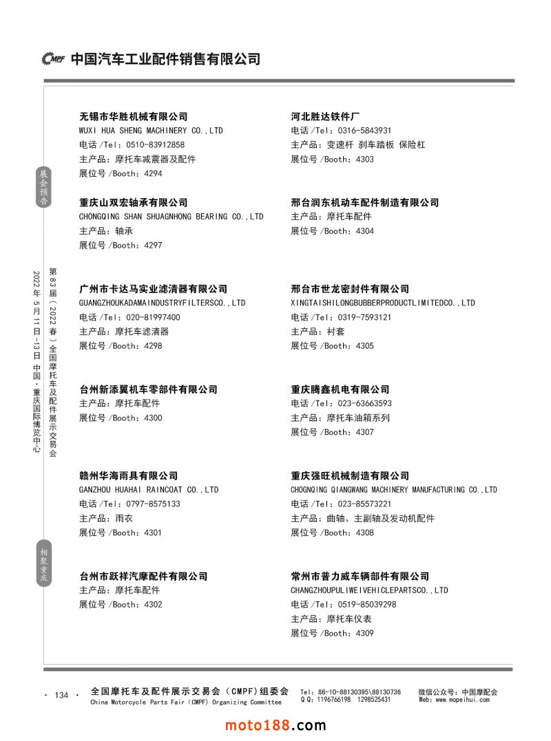 內134 第82屆(2021秋)全國摩托車及配件展示交易會-廣州站參展企業信息