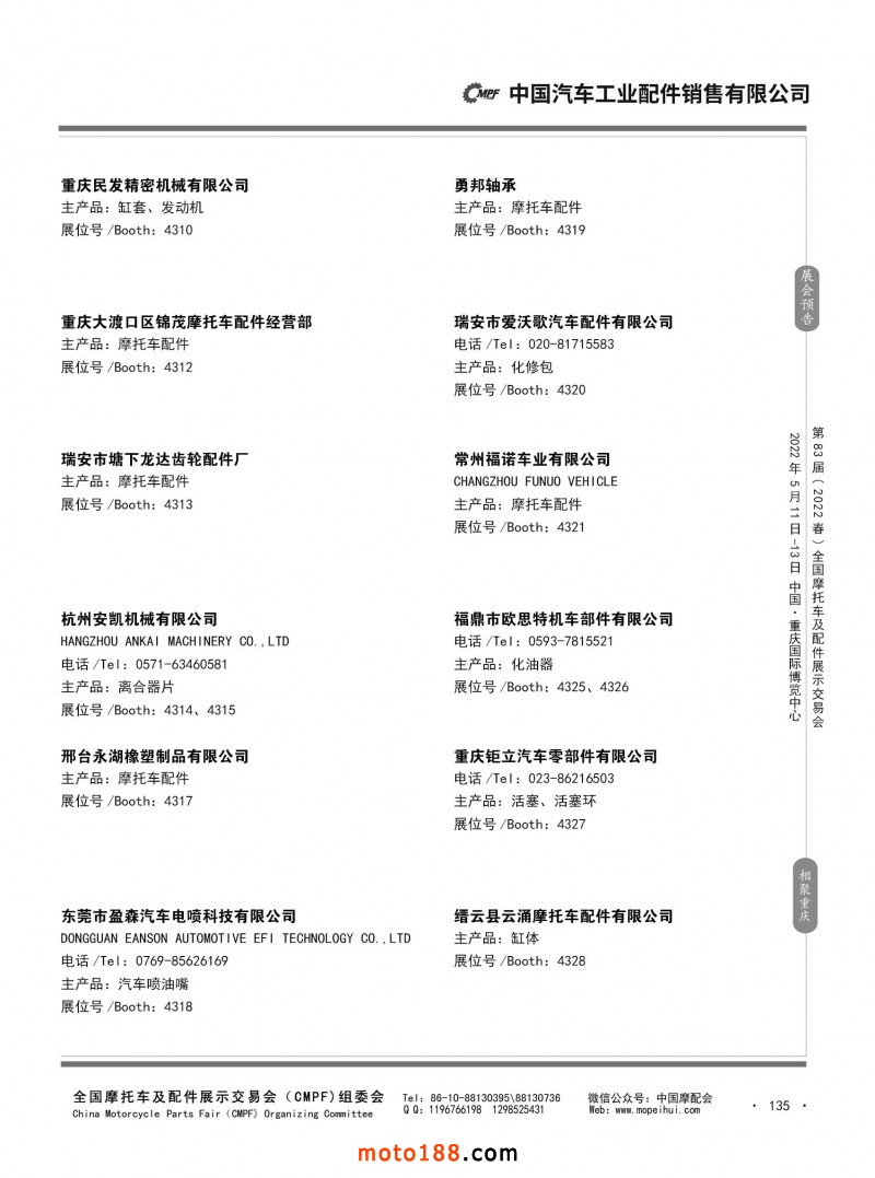 內135 第82屆(2021秋)全國摩托車及配件展示交易會-廣州站參展企業信息