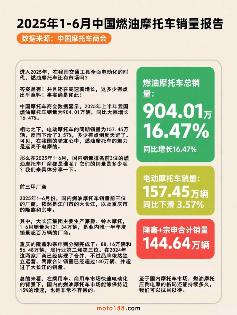 內15 2025年1-6月中國燃油摩托車銷售報告