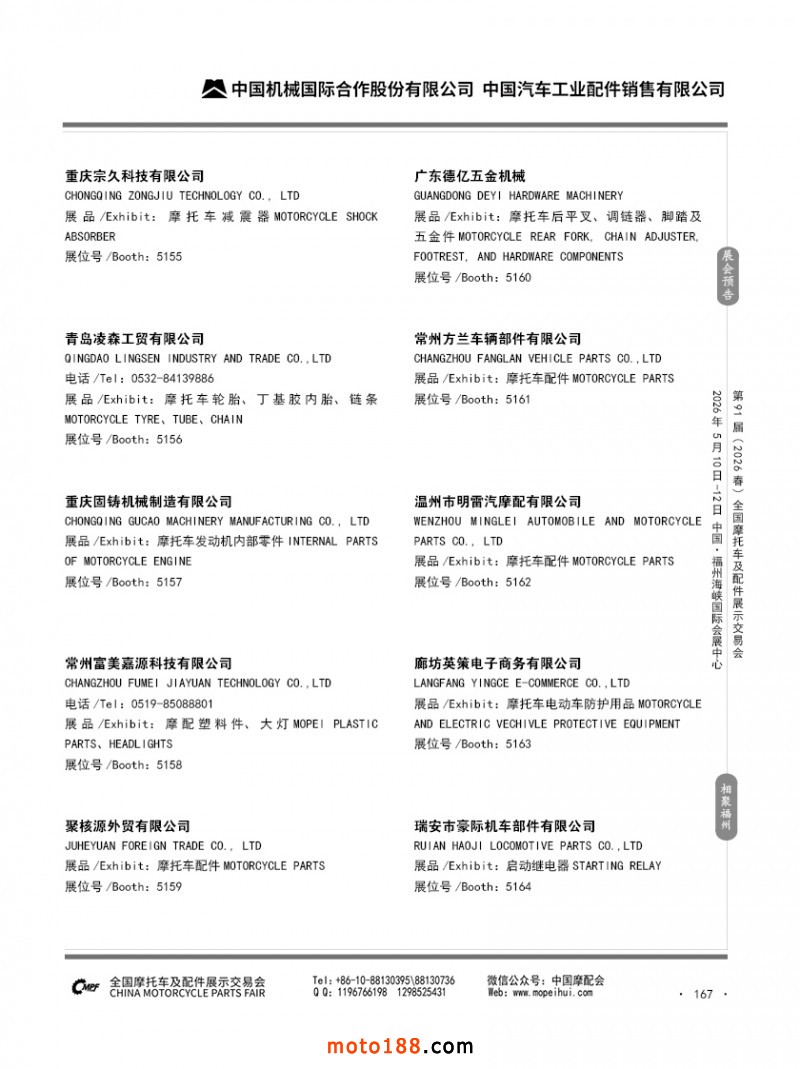 內(nèi)167 第90屆(2025秋)全國摩托車及配件展示交易會-廣州站參展企業(yè)信息