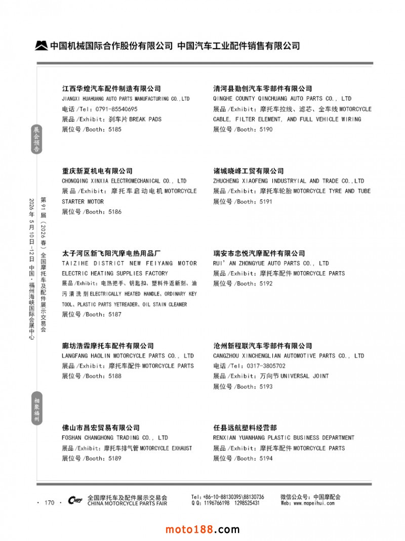 內170 第90屆(2025秋)全國摩托車及配件展示交易會-廣州站參展企業信息