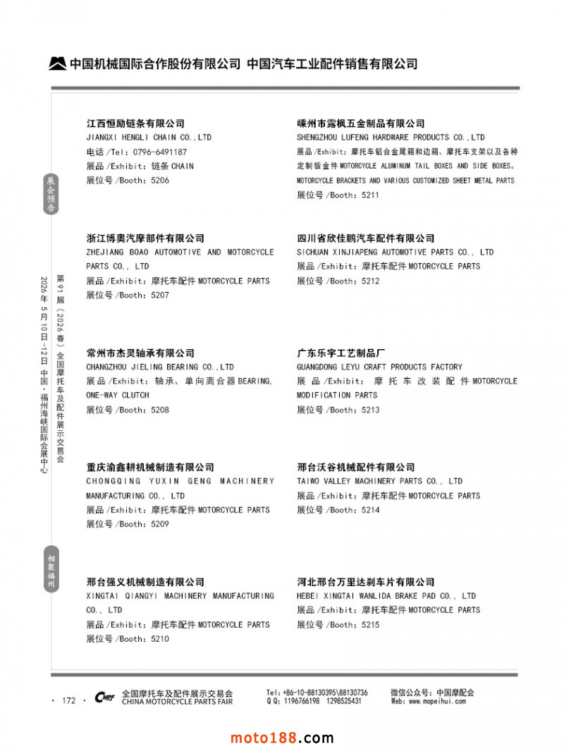 內172 第90屆(2025秋)全國摩托車及配件展示交易會-廣州站參展企業信息