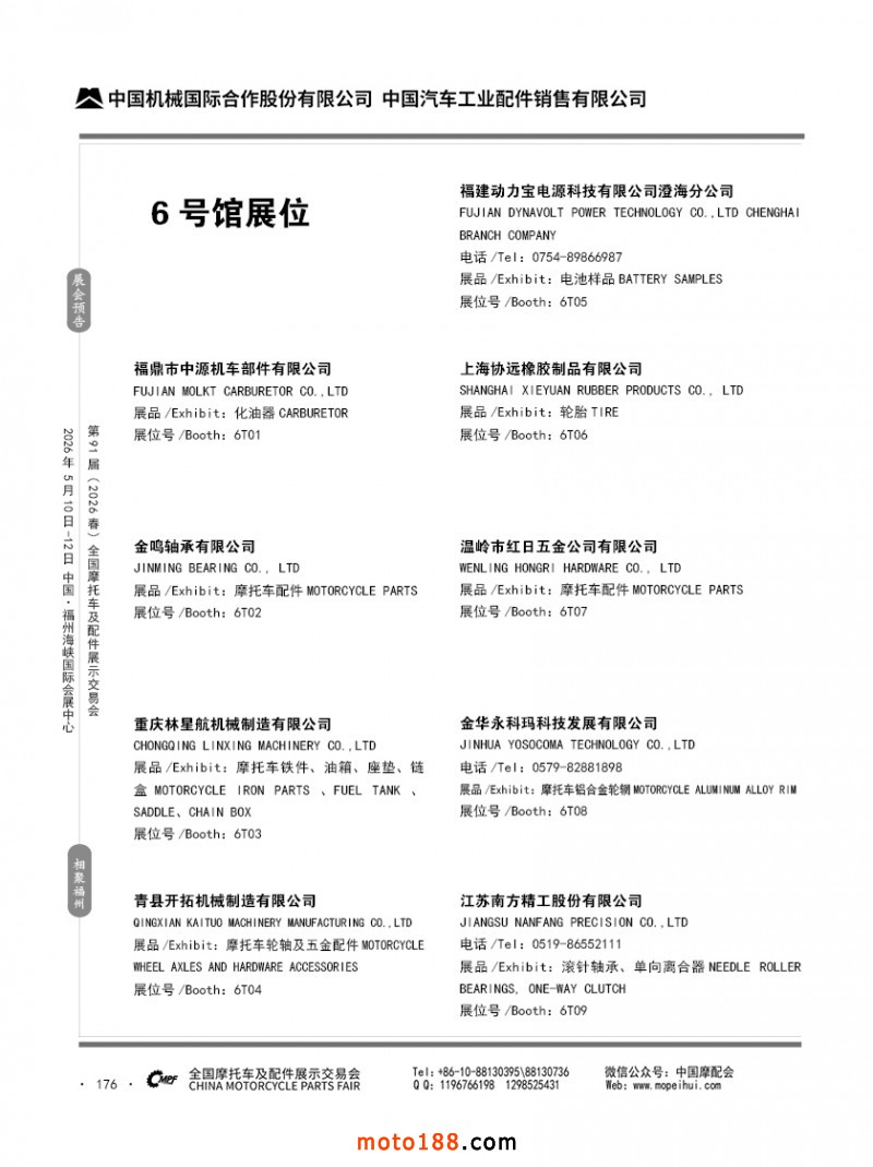 內(nèi)176 第90屆(2025秋)全國摩托車及配件展示交易會-廣州站參展企業(yè)信息