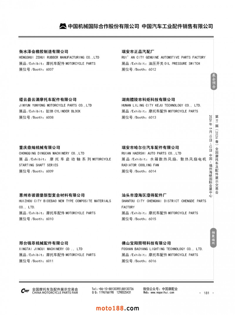 內181 第90屆(2025秋)全國摩托車及配件展示交易會-廣州站參展企業信息