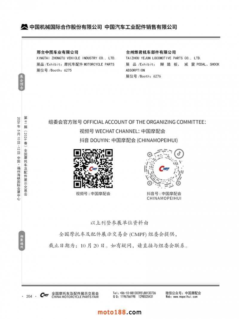 內204 第90屆(2025秋)全國摩托車及配件展示交易會-廣州站參展企業信息