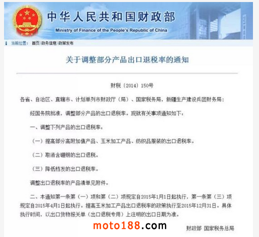 調(diào)整出口退稅摩托車相關(guān)產(chǎn)品名單