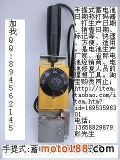 另外我要告訴大家,現在電池生產廠家的電池大多都不給客戶三包了,而且鉛價起落度大,有眼光的經銷商們用我的打碼器發了財,他們也給我介紹了好多生意,在此感謝他們,也許你要問他是么樣用我的打碼器發的財,我不說您可能也猜到幾分了吧,在電池價格最低的時候大進一批貸回來,不要廠家打日期,等年初電池漲了價銷售,就算賣不動您也不著急呢,還有摩配行業帶著電池做的配件經銷商,只賣電池銷量不大,給您進貨帶來不方便,進多了日期過了,所以您如果能自己在電池上打日期,那你說是不是沒有煩惱了呢,還有你可以對電池上的老日期進行更改比如:2012年6月15,可改成2012年7月15,只對6字進行加打,打成7字,方法是,將7字,,,