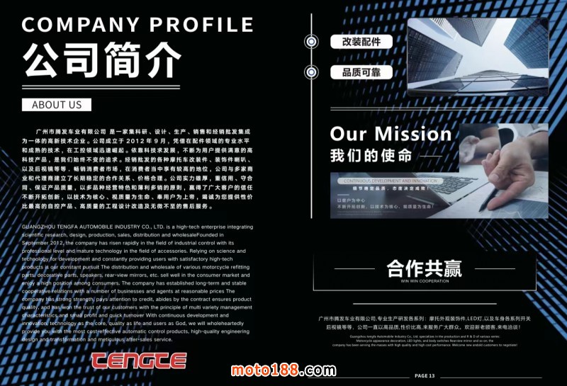 廣州市騰發(fā)車業(yè)有限公司,專業(yè)生產研發(fā)各系列:摩托外觀裝飾件,LED燈,以及車身各系列開關,后視鏡等等,公司一直以高品質,性價比高,來服務廣大群眾。歡迎新老顧客,來電洽談!
