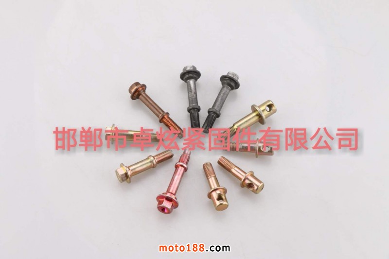 本廠主要生產的產品有:輪轂螺栓、搖臂軸系列、消聲器螺栓、電動自行車電機軸、減震連體活塞桿毛坯、電動自行車中軸、油管接頭螺栓、臺階螺栓、蓋母、開花母系列定做各種高難度高精度異形件?