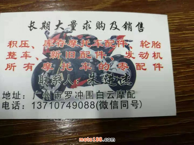大量收購庫存,積壓,抵債,處理的摩托車整車及全車配件,發動機,鋁輪,減震器,化油器,剎車片,油箱塑料件,貨架電鍍件鐵件,輪胎。另現有原廠配套的湛江德利京濱化油器10000個,有CG125.150.200.天虹90,大陽100.泰本田125,GY6,宇鉆,福喜,喜之星等車型。有需要的朋友請聯系13710749088.微信同號,廣州發貨