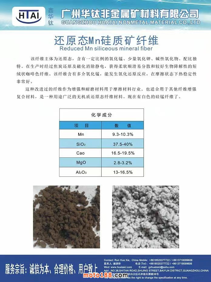 主要產(chǎn)品:樹(shù)脂,各種纖維,金屬纖維,助劑和填料 |