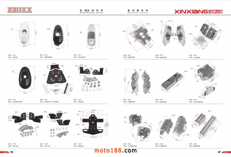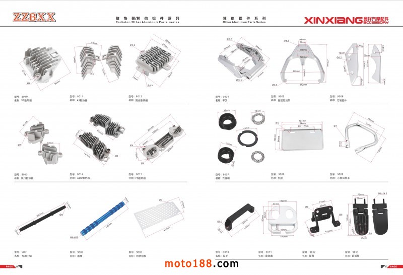 腳蹬、方向把壓緊塊、掛鉤、鋁單撐、大燈散熱片等鋁件 |