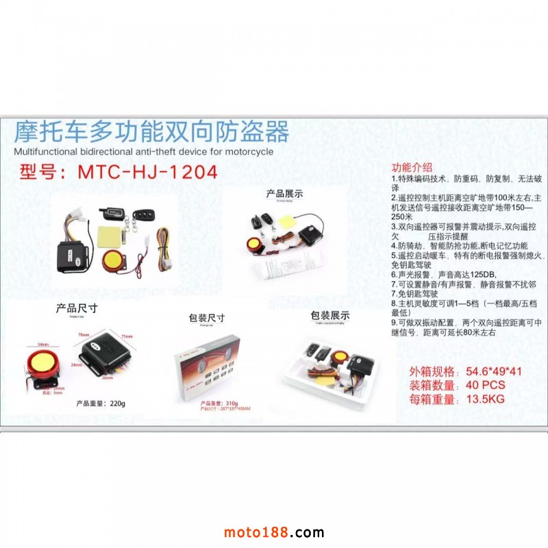 專業(yè)生產(chǎn)摩托車電動(dòng)車多功能防盜器!公司自營品牌:CK、AUTO 主做出口中東、非洲、印度等多個(gè)國家。歡迎新老客戶來電洽談合作!羅澤鵬