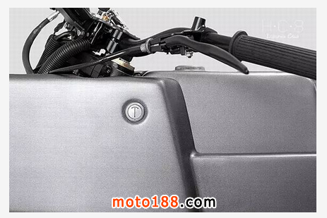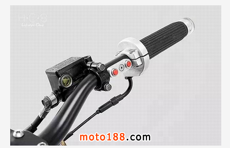 這怪車用的是建大測試輪胎,定制款離合器和定制款制動桿。像儀表盤這種部件當然也是定制的,轉向燈顯示和騎行專用的 GPS都在那點不大的小面板上。更多的組件可以通過通過智能手機體現,車頭處有手機卡托的位置。