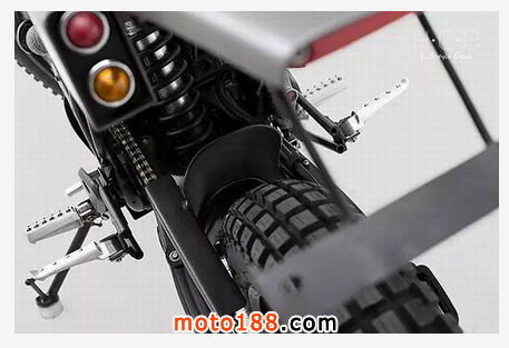 這款改裝版 Yamaha Scorpio 很明顯的展示出了粗獷的風格,可能是設計師以為粗壯才是他的真愛,組裝才是男人的機車。這種暗灰色全鋁制車身在設計上有一些優點,在車身重量上可以很好的把控。對即要求外形又要求速度感的車手來說,這點相當對味。