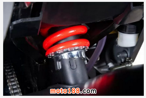 雙側避震很容易使兩側壓力不均,造成側翻,而中央減震器的位置決定了,后輪遇到大沖擊時,機車在短行程內即可吸收沖擊。