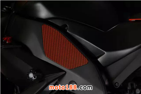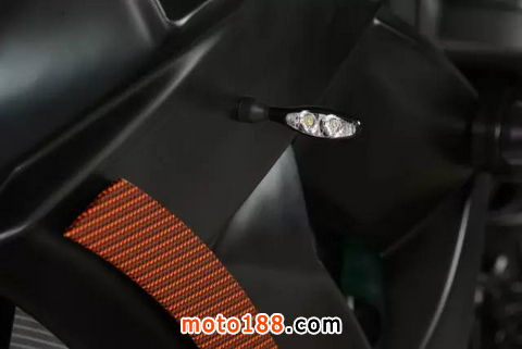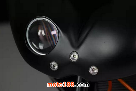 加滿油才195公斤,理想條件下最高車速能超過320km/h。為此,PUIG的風(fēng)擋還專門放在風(fēng)洞里吹過,絕非路邊攤隨便揀來的。所謂理想條件包括把頭埋在風(fēng)擋的后面,這個位置要看到后視鏡可是無比艱難,Warm Up于是在油箱上設(shè)了一片WAECO顯示器——用攝像頭取代后視鏡還能進一步降低風(fēng)阻。類似的小心眼還包括Kellermann的Micro 1000 DF后燈組,不亮的時候幾乎注意不到它的存在。頭燈倒很容易引起注意,遠(yuǎn)近光現(xiàn)在換成氙氣獨眼,下面還墊了一排LED日間燈,非常明亮。