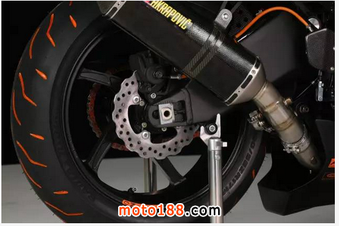 軸承廠商Emil Schwarz對懸架做了徹底的更新,周身上下綴滿定制部件,幾秒種就能搞定精密的調(diào)校,還不依賴什么工具。最后,OZ Piega車輪、Bridgestone Battlax BT-016輪胎和Spiegler剎車也都為高昂的價簽獻上幾許平衡感。